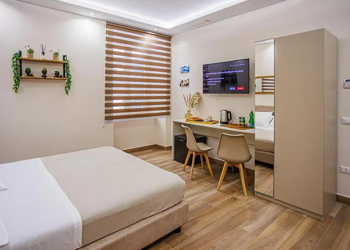 The rooms at this Naples hotel are fitted with climate control as well as coffee/tea making machines. If you like cooking, there are coffee and tea making equipment, and a fridge provided on site.